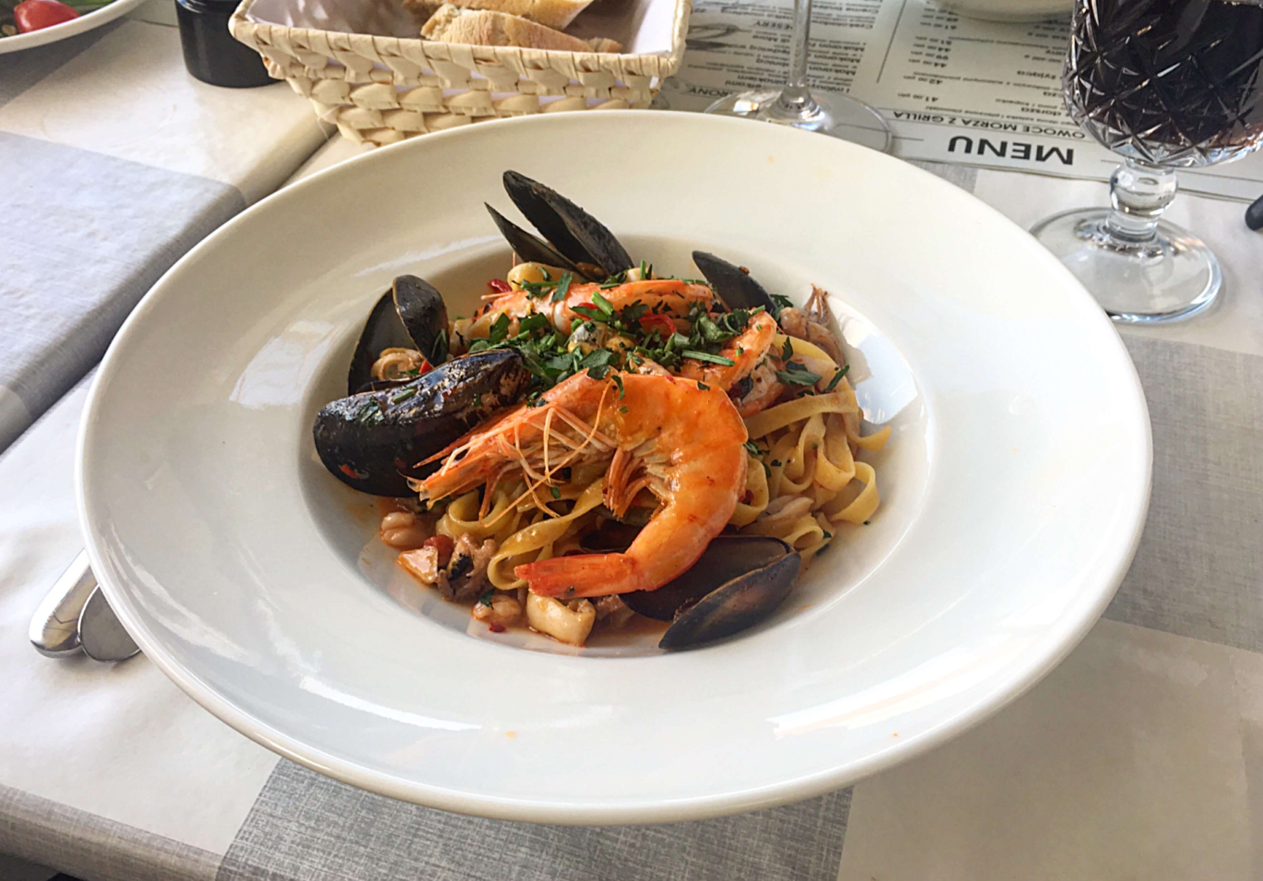 Jako, że nasi czytelnicy są dla nas najważniejsi, a rzetelność zawsze jest priorytetem, bez względu na koszta zdecydowaliśmy się na najdroższe danie w karcie! Cena nie gra roli! O sałatce z krewetkami słyszeliśmy wiele dobrego i ostatecznie zdecydowaliśmy się również na nią. Owoce morza z warzywami i sosem koktajlowym kosztowały nas dosłownie 19,5 złotego. Miks sałat z roszponką, słodko-kwaśnym sosem, bułkami z masłem ziołowym i ośmioma krewetkami okazał się zaskakująco smaczny. Prosta kompozycja, różnorodne smaki i solidna porcja sprawiły, że przy ponownej wizycie bez wahania powtórzylibyśmy ten wybór.